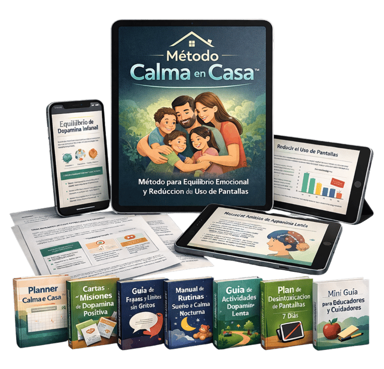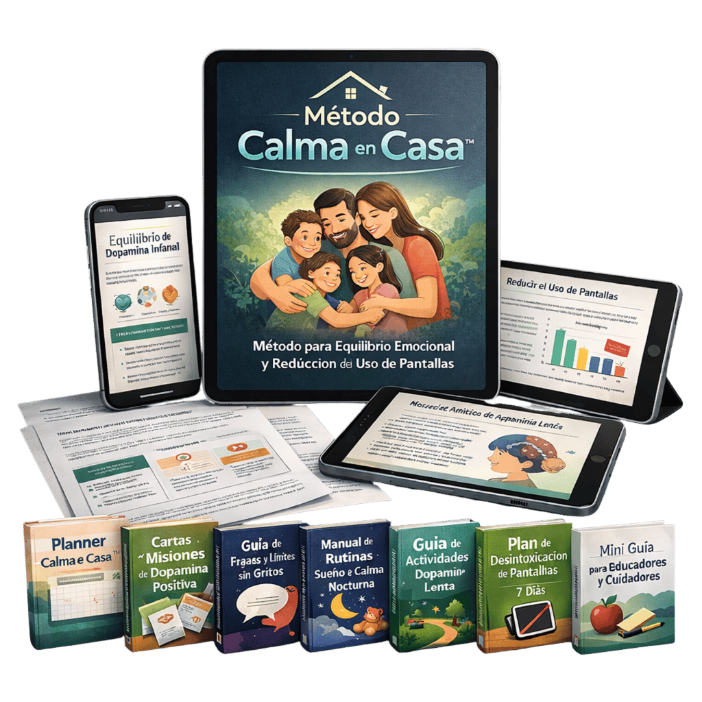 Método Calma en Casa™ es un método práctico basado en neurociencia para reeducar la dopamina infantil y reducir la dependencia de pantallas sin gritos, sin castigos y sin extremos.