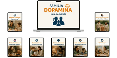 Todo el método Familia Dopamina™ está diseñado para aplicarse desde el primer día, incluso si hoy te sientes cansada, culpable o sin energía.